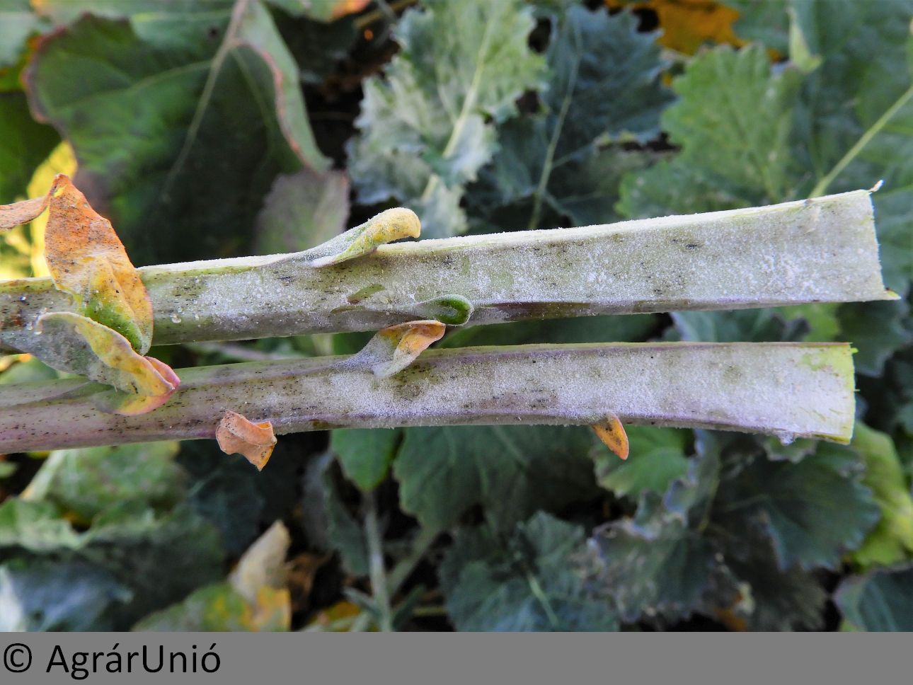 Kémiai eszközként az azoxistrobin, illetve kéntartalmú fungicidek jöhetnek szóba, illetve egyes regulátorként alkalmazott azolok, mint pl. a tebukonazol + protiokonazol vagy a difenokonazol + paklobutrazol kombinációk esetében a gyártók az Erysiphe cruciferarum elleni mellékhatást említik.