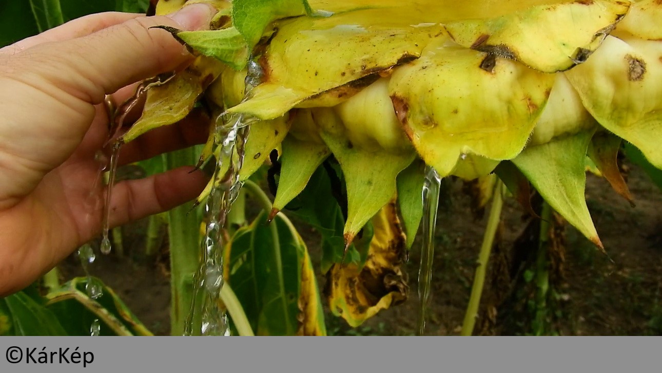 A napraforgótányér megbetegedése szempontjából kifejezetten veszélyes, ha abban felgyülemlik a csapadék, vagy a harmat. Ez megnöveli a szürkepenészes és fehérpenészes megbetegedés bekövetkeztét, ami akár a tányérban fejlődő termés elvesztését is eredményezheti. A lenti rövid videó mutatja, megfelelő tányérállás esetén milyen nagy mennyiségű víz képes összegyűlni abban.