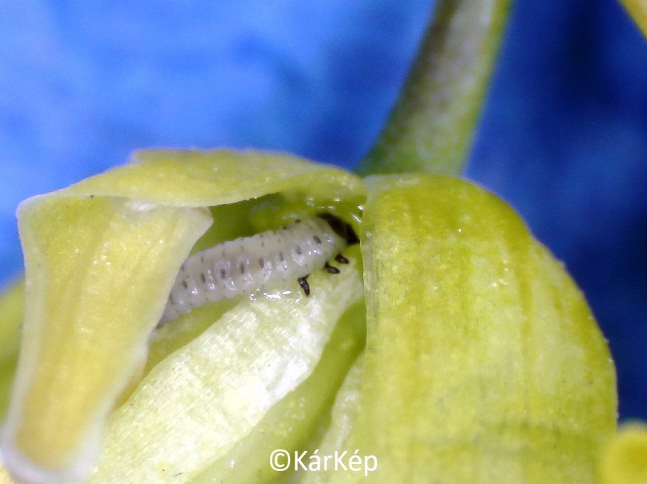 Repcefénybogár (Meligethes aeneus) lárvái a repcevirágokban. A "Bővebben" gombra kattintva további videók tekinthetők meg a lárvákról.