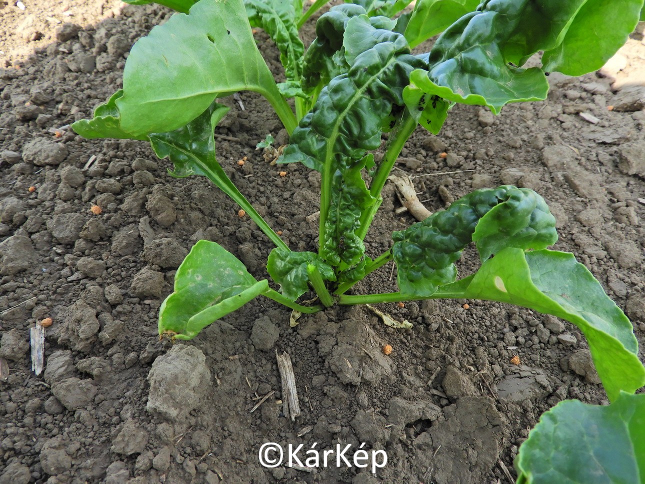 Erős levéltetű-fertőzés kezd kialakulni a még fiatal cukorrépaállományokban. A levelek torzulását, sodródását általában a fekete répa-levéltetű (Aphis fabae) kártétele okozza.