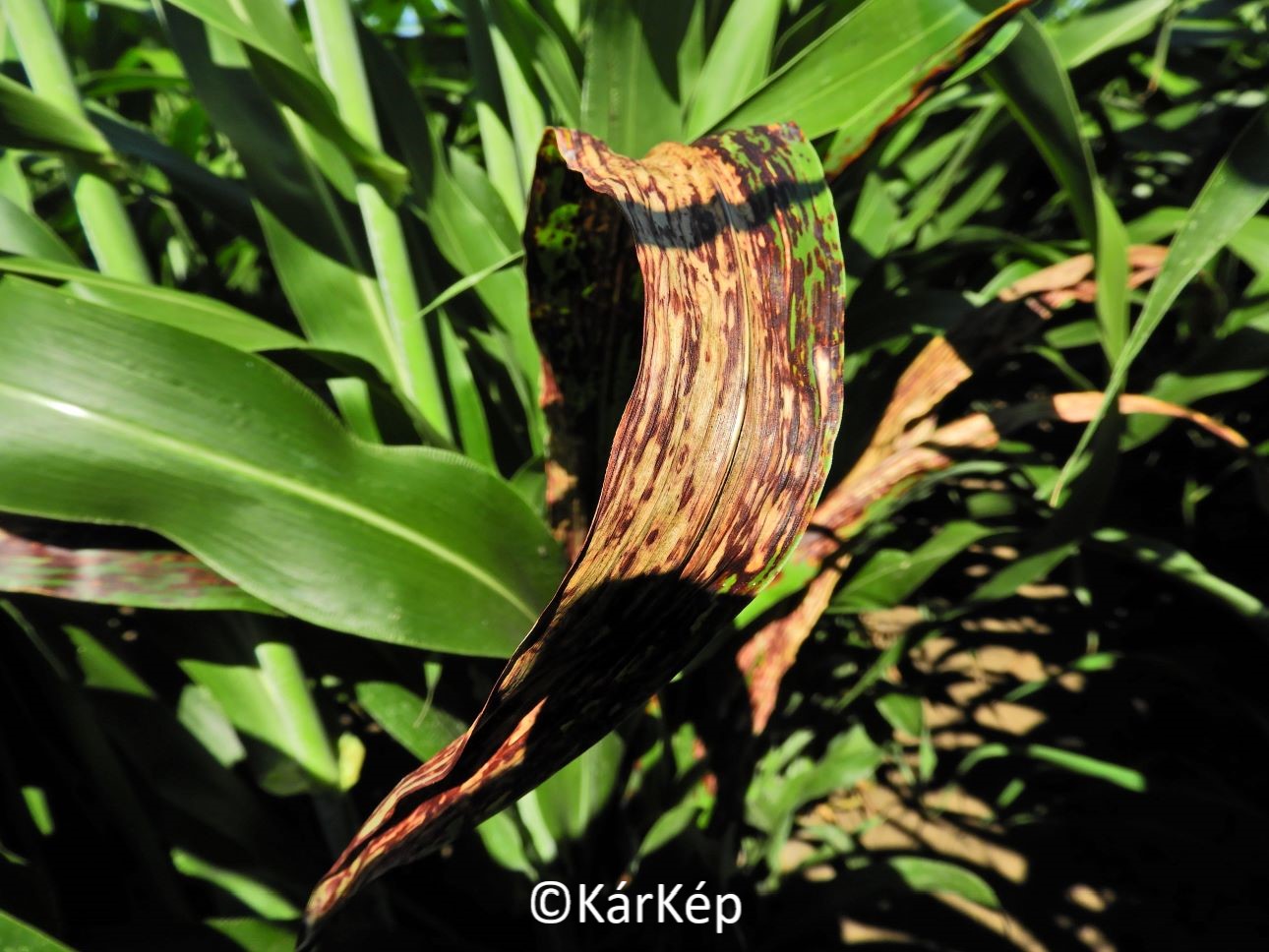 Cirok baktériumos levélcsíkosságának (Pseudomonas andropogonis) tünetei szemescirok levelein.