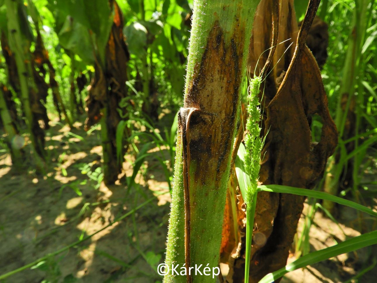 Az elmúlt években a száraz időjárási körülmények miatt már nem alakult ki járványszerű diaportés (Diaporthe helianthi) fertőzés a napraforgókban, azonban ebben az évben mintha ennek lennénk a tanúi. Helyenként tömegesen száradnak le a növények levelei, a száron világosbarna foltok alakulnak ki, maga a szár kiüregesedik. Még több kép a "Bővebben" gombra kattintva látható.